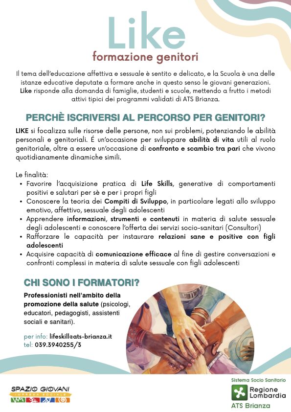 In collaborazione con ATS Brianza e in continuità con i percorsi di promozione della salute già realizzati nella nostra scuola, viene proposta un’iniziativa formativa rivolta ai genitori del territorio.